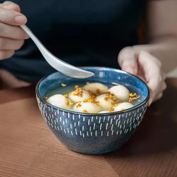 Embossed Ceramic Vintage Glaze Large Rice Bowl